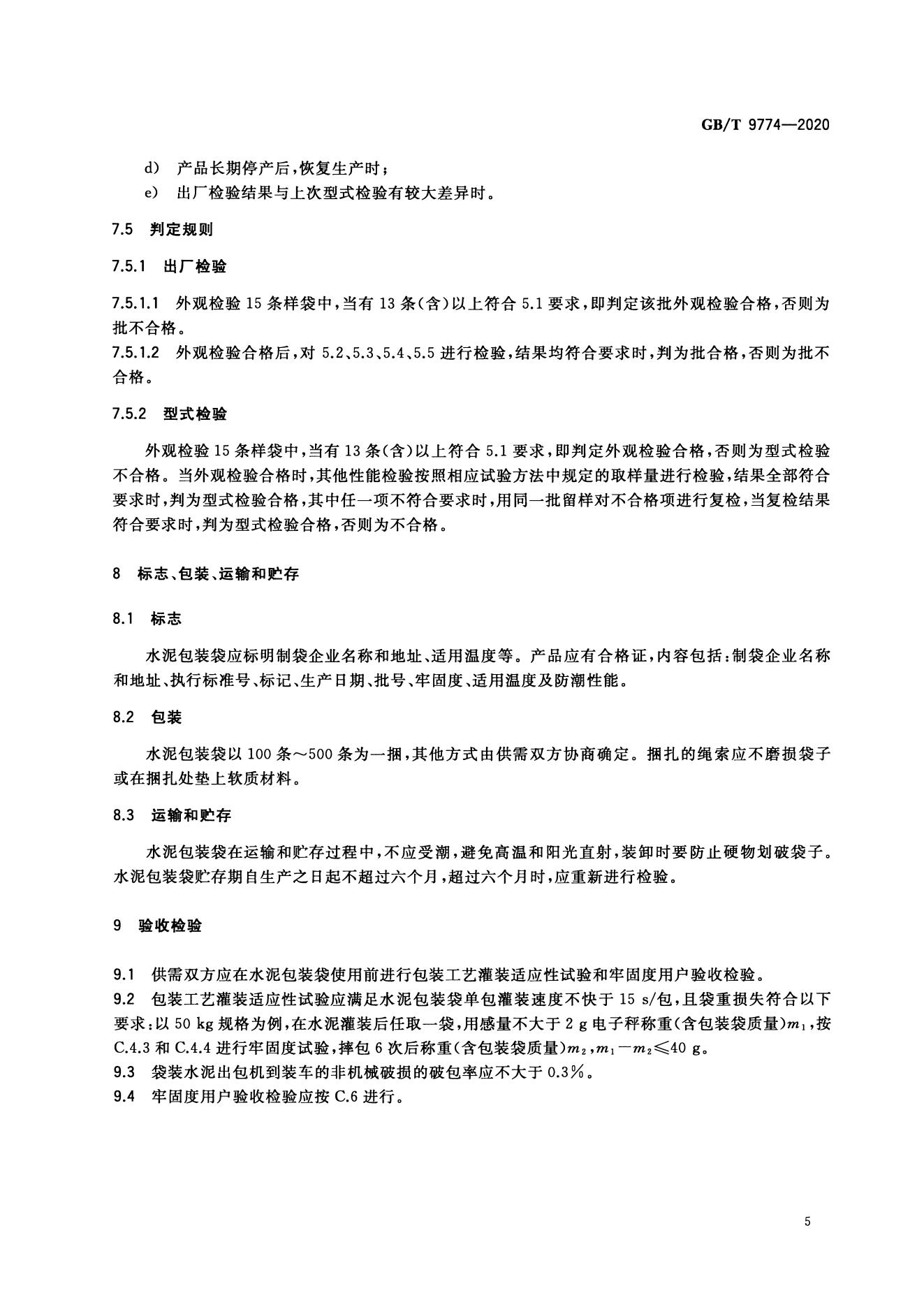 今天起,GB/T 9774-2020《水泥包裝袋》新標準開始實施!