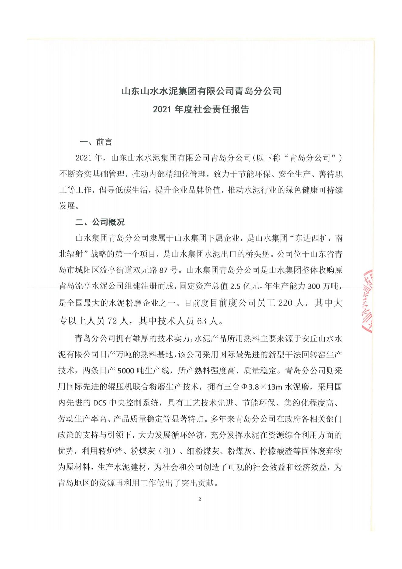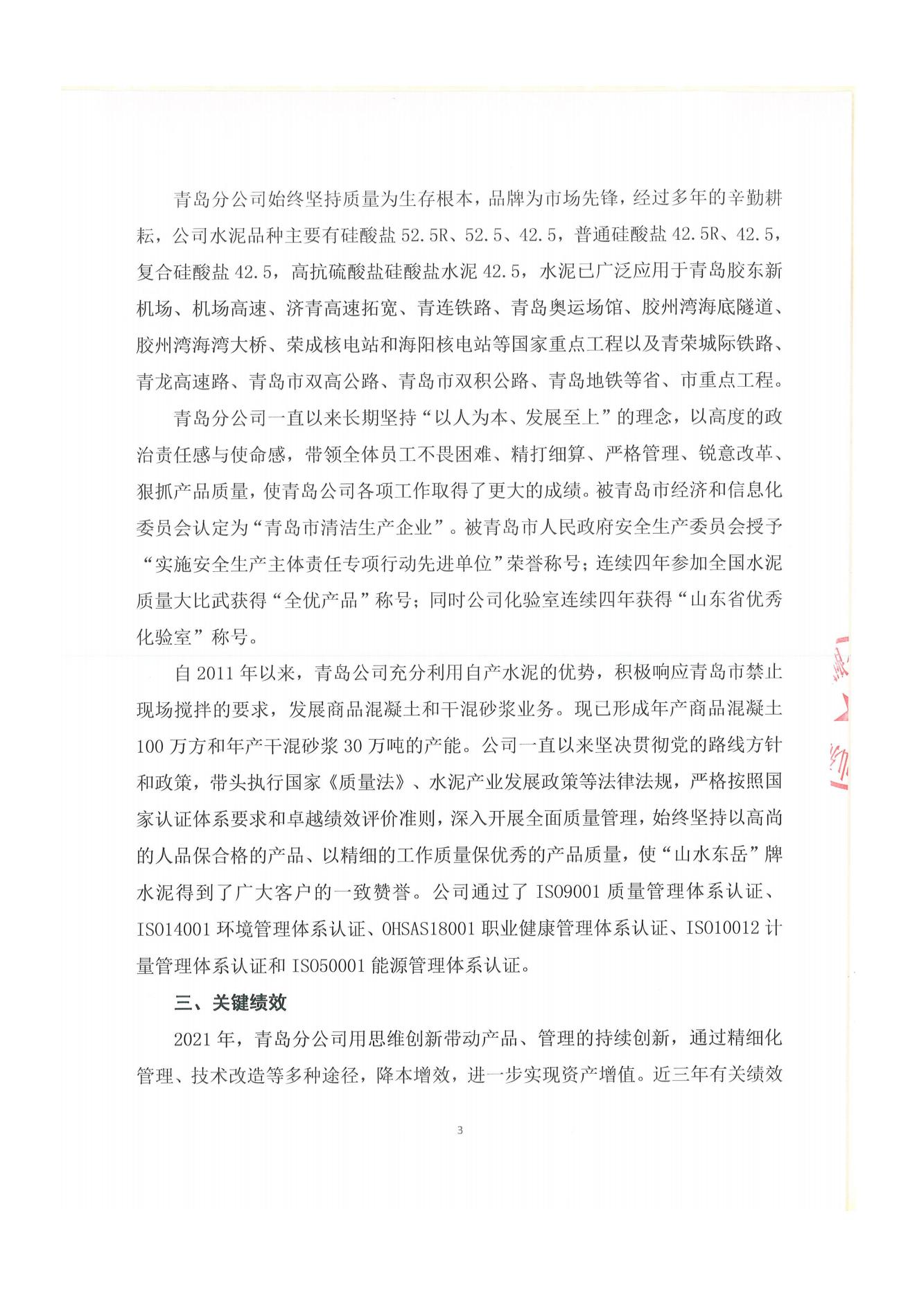 山東山水水泥集團(tuán)有限公司青島分公司申報(bào)中國(guó)水泥協(xié)會(huì)綠色工廠相關(guān)公示材料