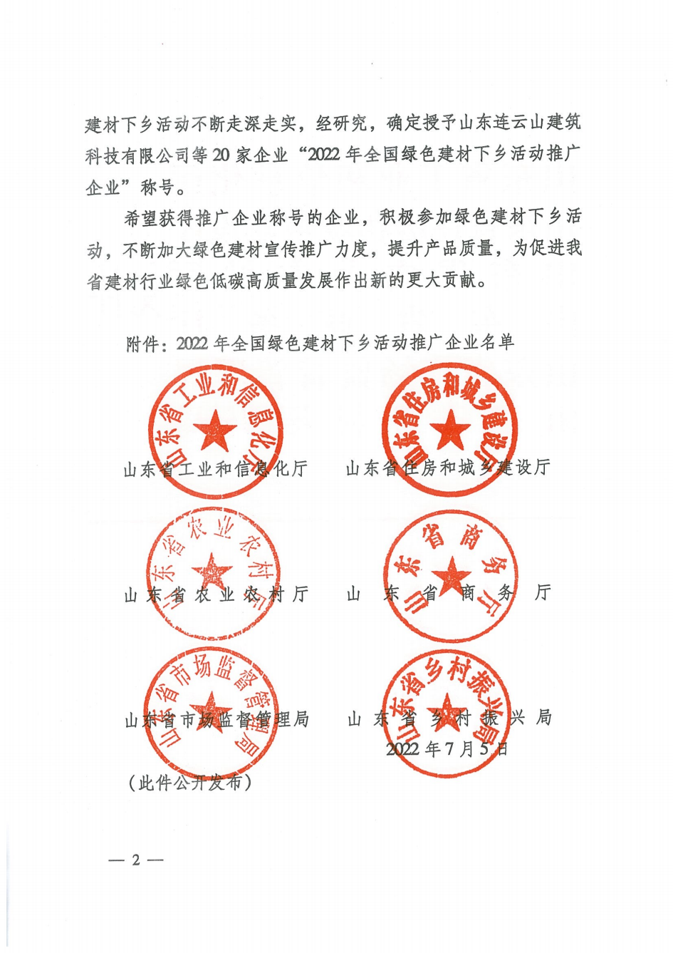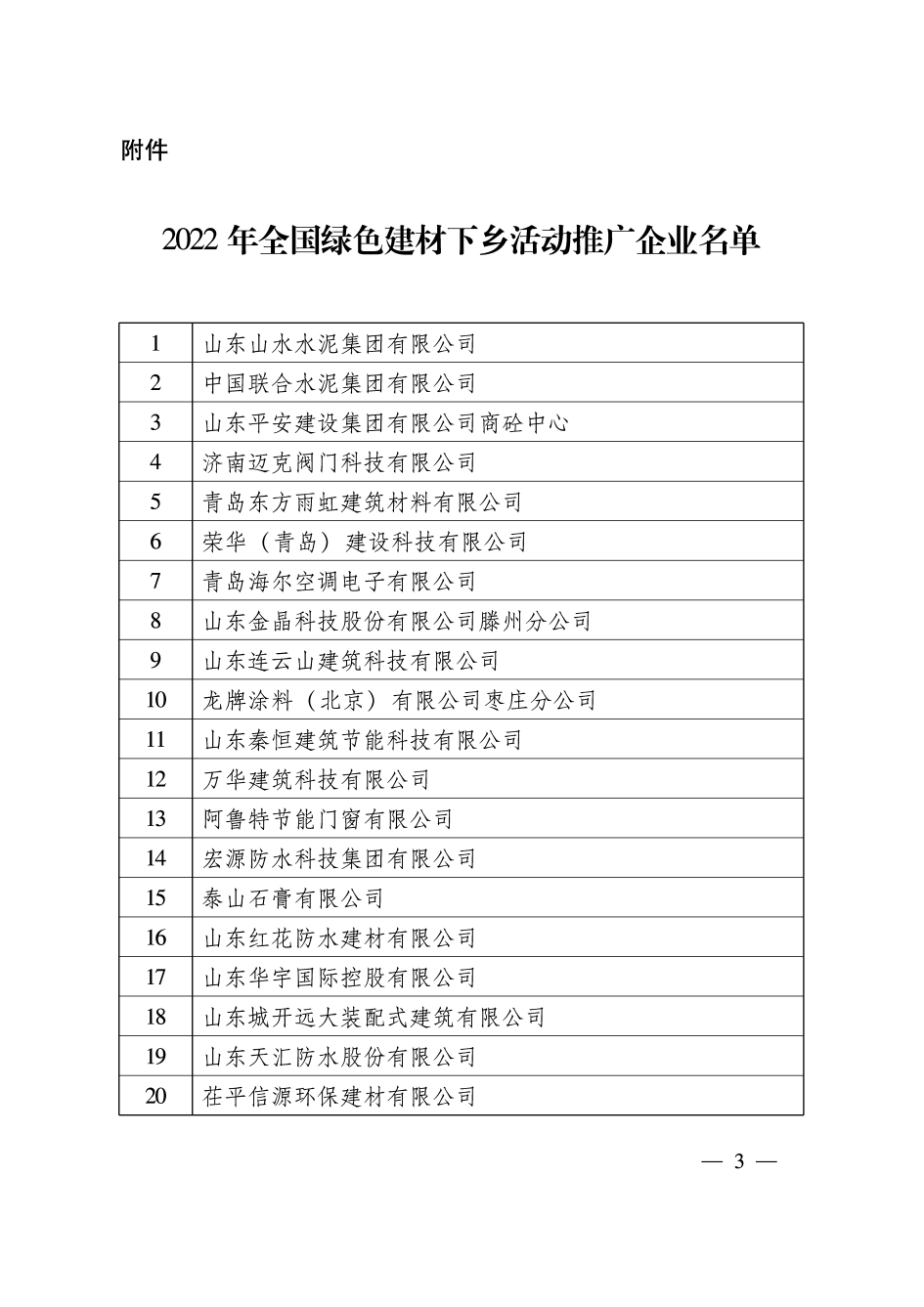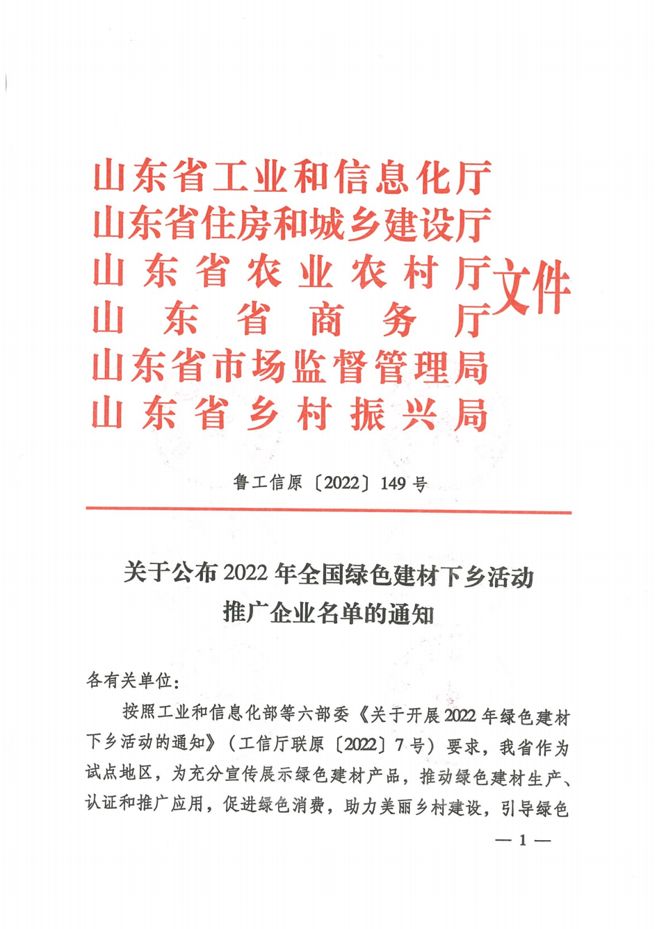 關于公布2022年全國綠色建材下鄉活動推廣企業名單的通知