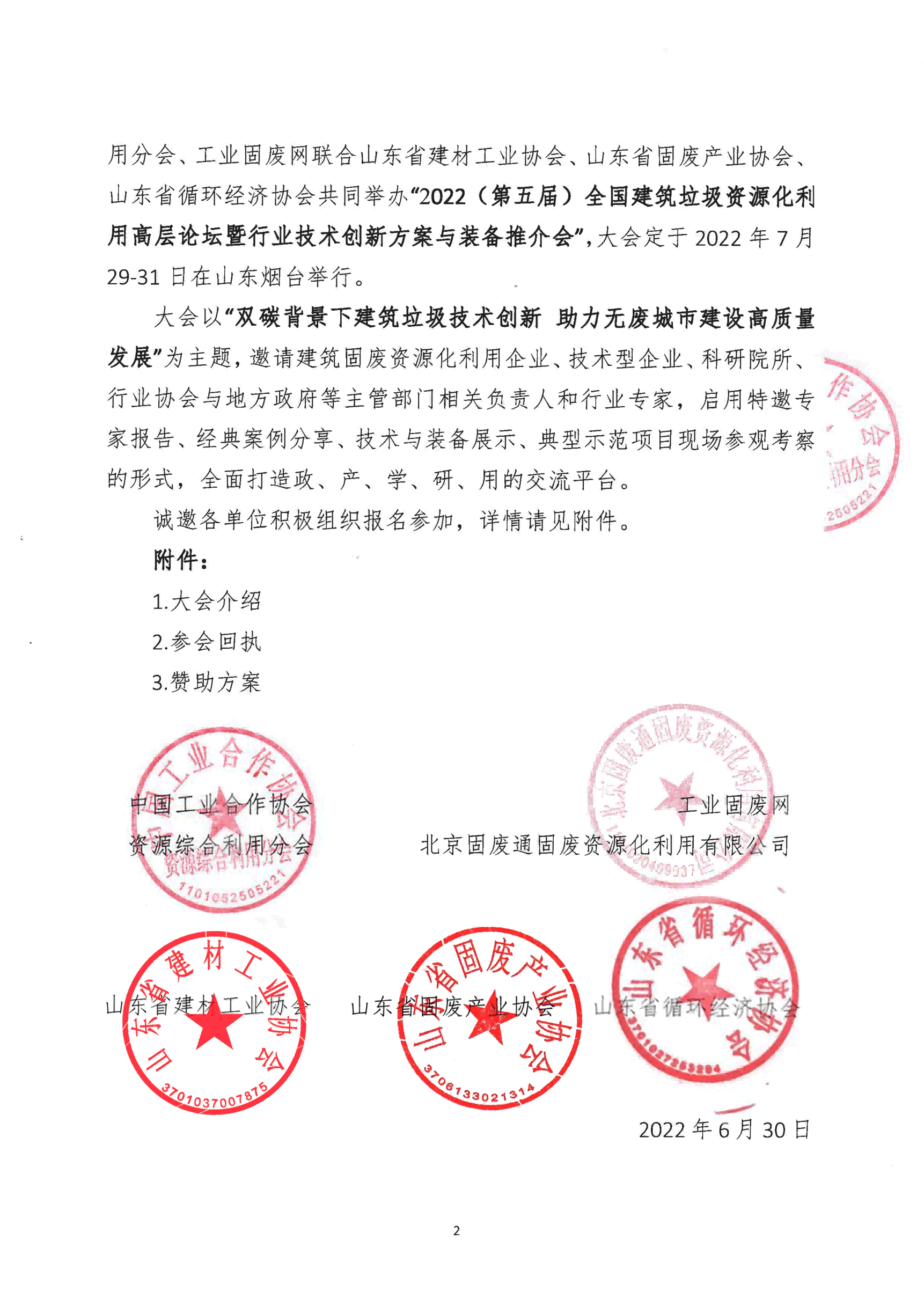 關于“2022(第五屆)全國建筑垃圾資源化利用高層論壇暨行業技術創新方案與裝備推介會”的通知