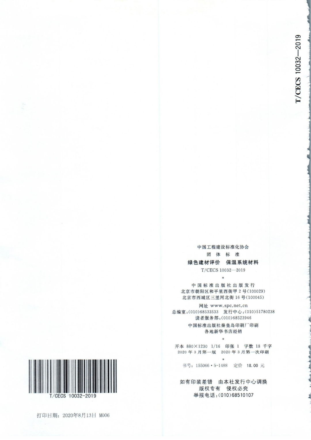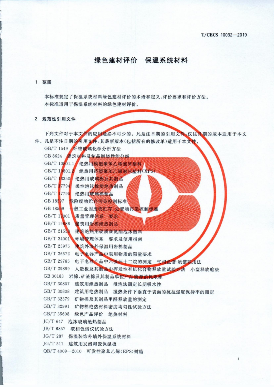 綠色建材認證丨《綠色建材評價 保溫系統材料》 T/CECS 10032-2019