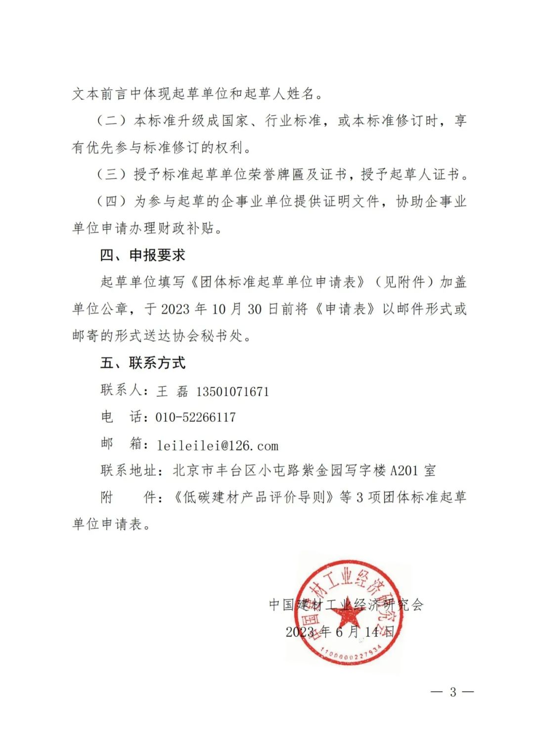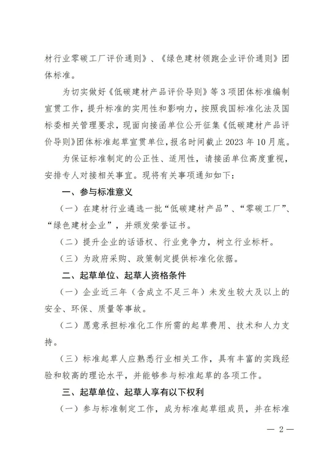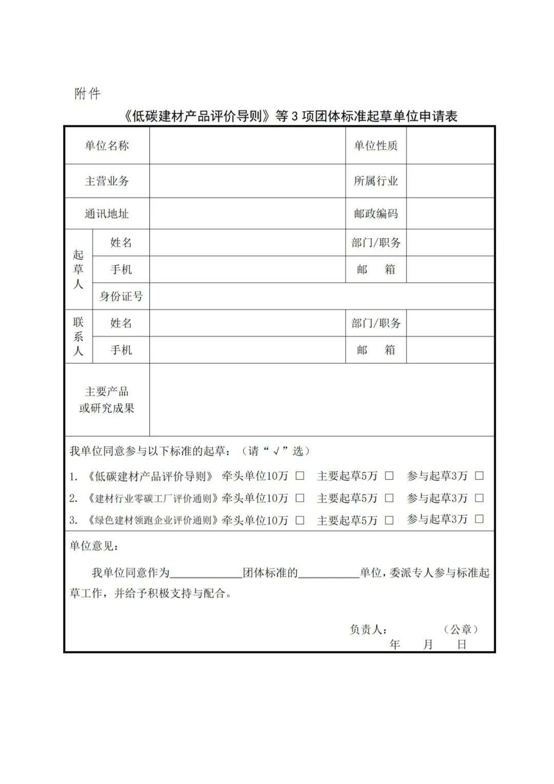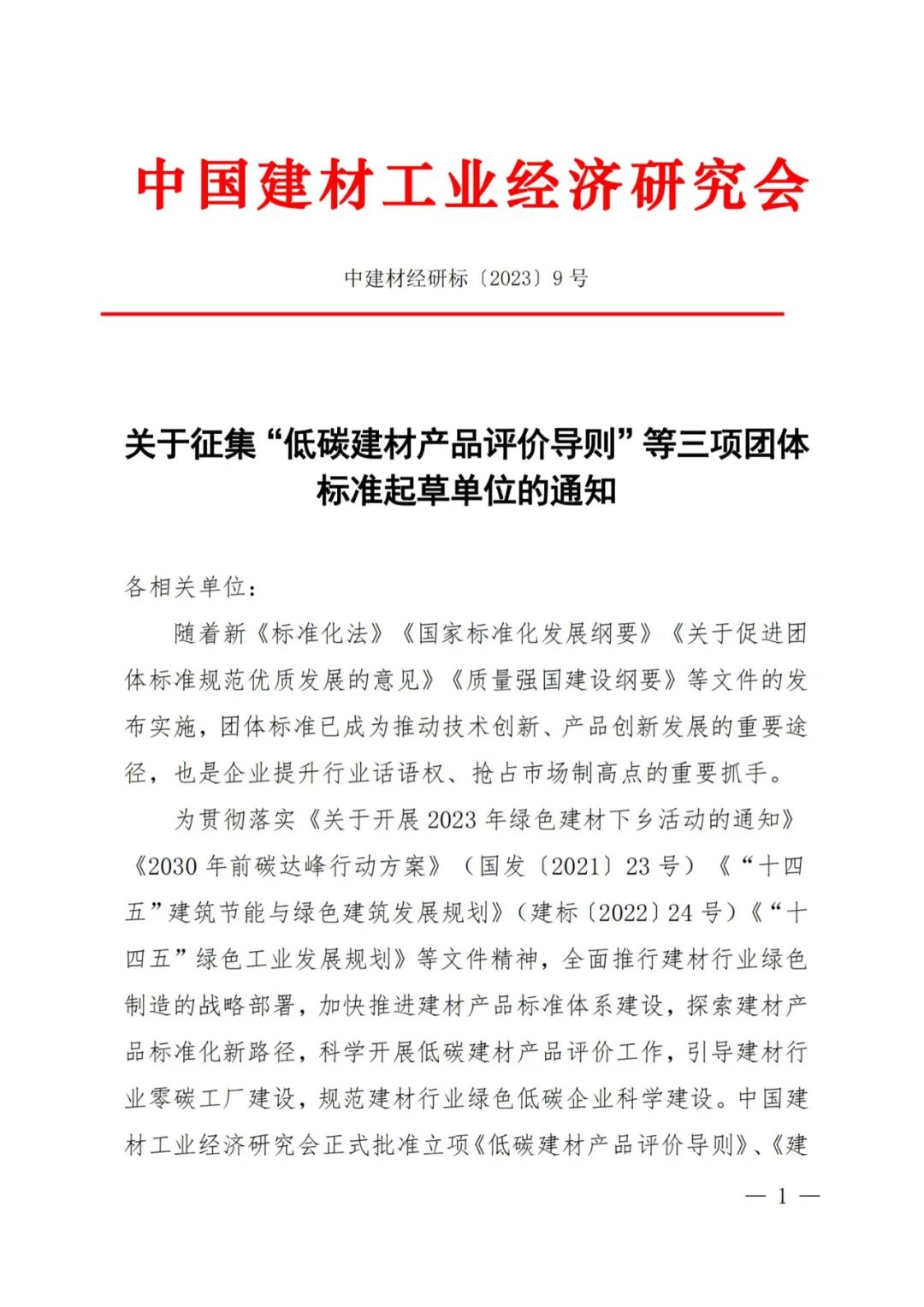 關于征集“低碳建材產品評價導則”等三項團體標準起草單位的通知