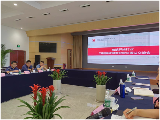 7月7日,課題組到訪泰山玻璃纖維有限公司。泰山玻纖副總經理張國等領導熱情接待了課題組。在隨后舉行的專題座談會上,泰山玻纖安環部趙傳斌副部長向課題組作了泰山玻纖節能降碳典型經驗和做法交流報告,從整體規劃、指標管控、技術升級等環節,全面分享了泰山玻纖在節能減碳方面開展的系統性工作。
