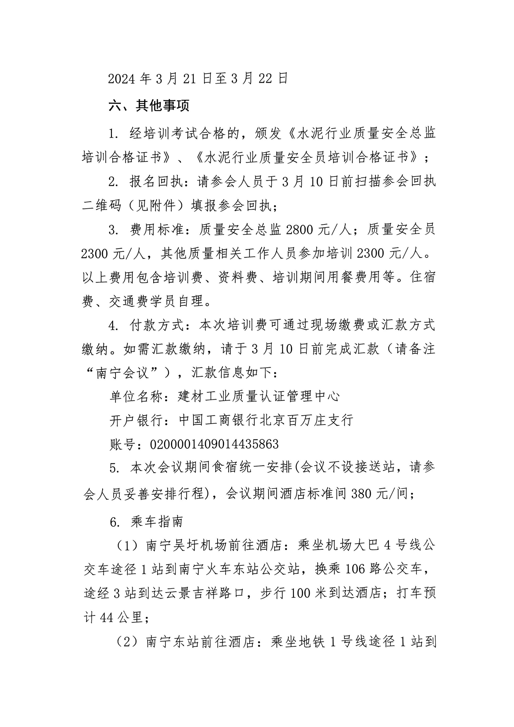 建材工業(yè)質量認證管理中心關于舉辦水泥產品生產單位質量安全總監(jiān)和質量安全員培訓班(南寧班)的通知