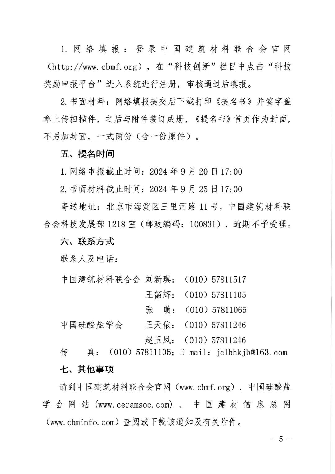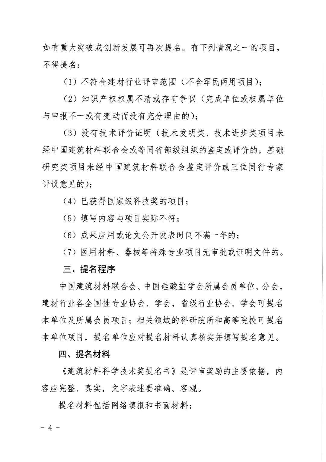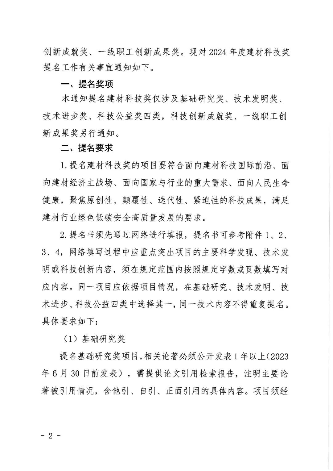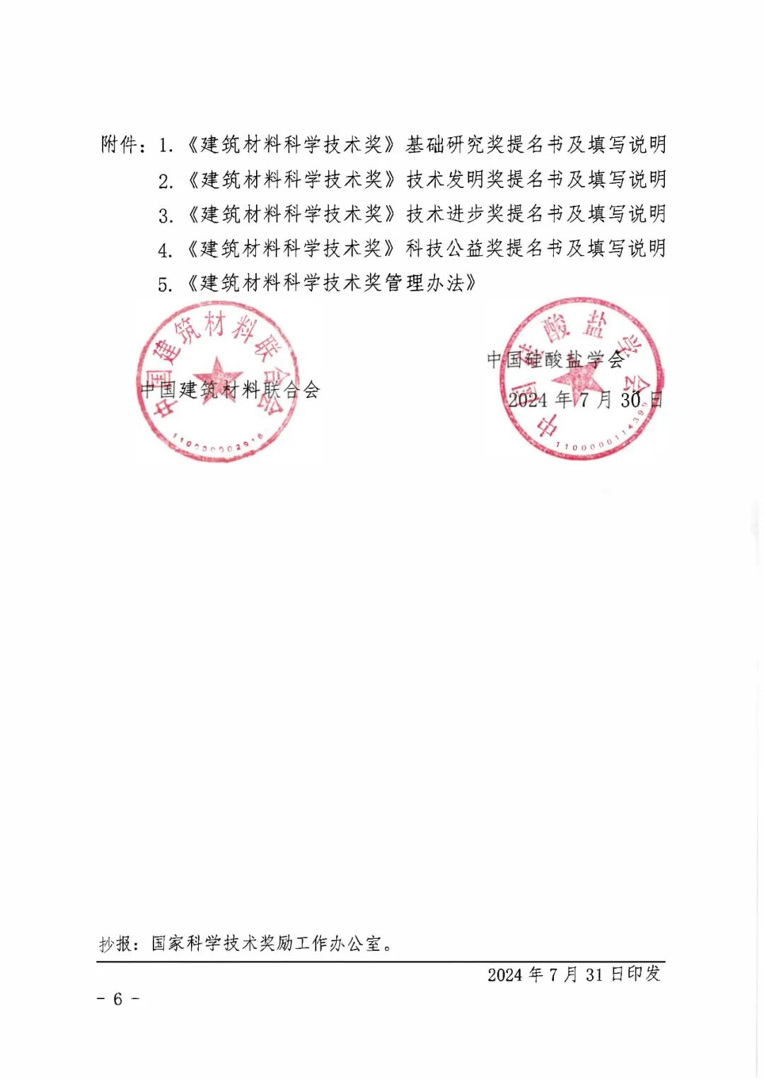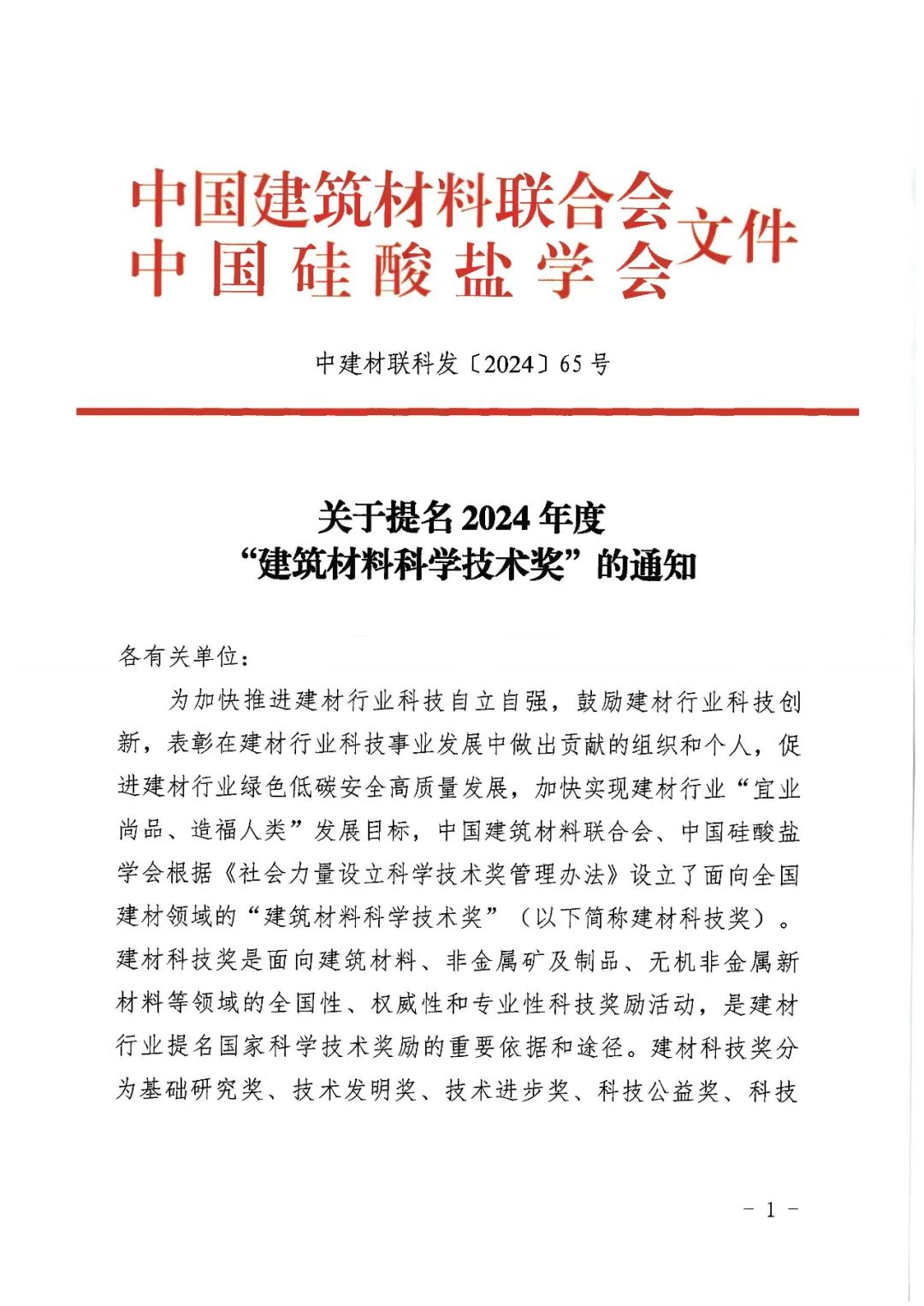 中國建筑材料聯(lián)合會 中國硅酸鹽學(xué)會關(guān)于提名2024年度“建筑材料科學(xué)技術(shù)獎”的通知