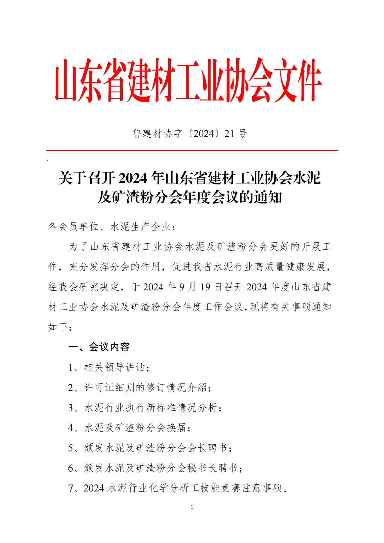 關于召開2024年山東省建材工業協會水泥及礦渣粉分會年度會議的通知