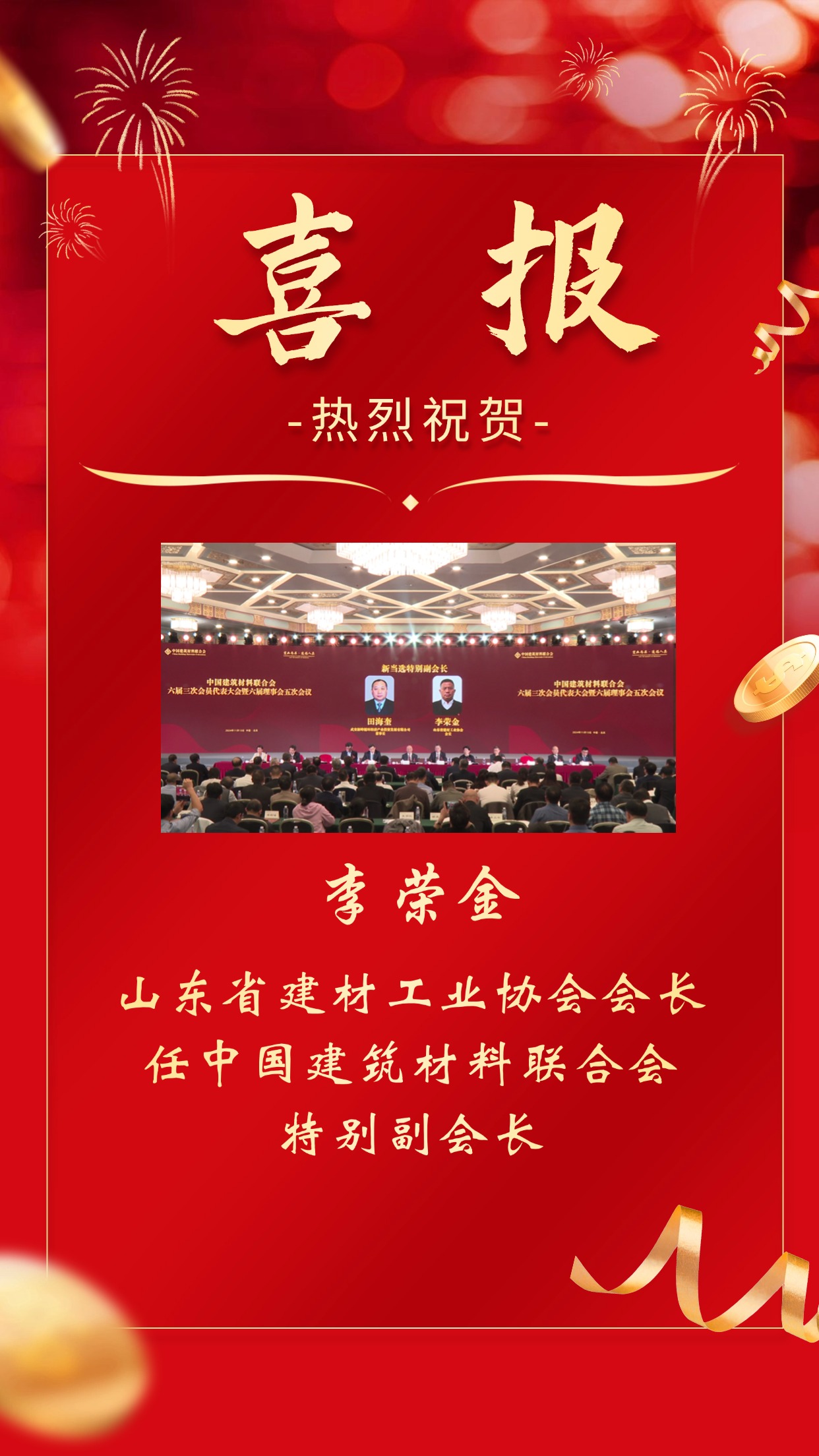 熱烈祝賀山東省建材工業(yè)協(xié)會(huì)會(huì)長(zhǎng)李榮金任中國(guó)建筑材料聯(lián)合會(huì)特別副會(huì)長(zhǎng)