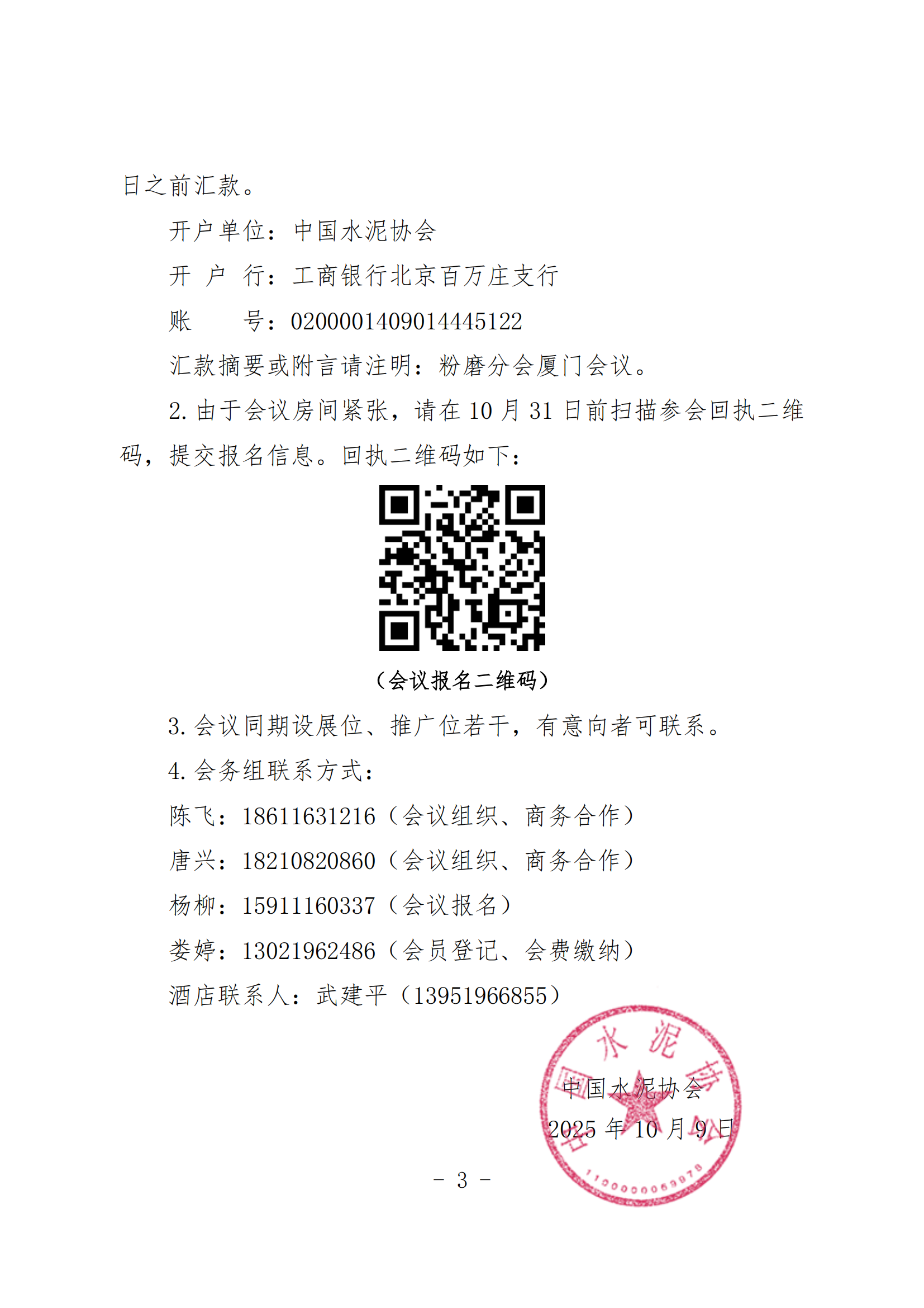 中國水泥協會關于召開2025年中國水泥協會水泥粉磨企業分會年會暨第二屆會員代表大會的通知
